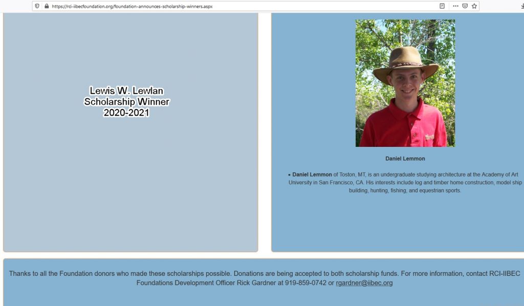 Some foundations that award scholarships feature the recipients on their websites, such as the RCI Foundation did for me below.